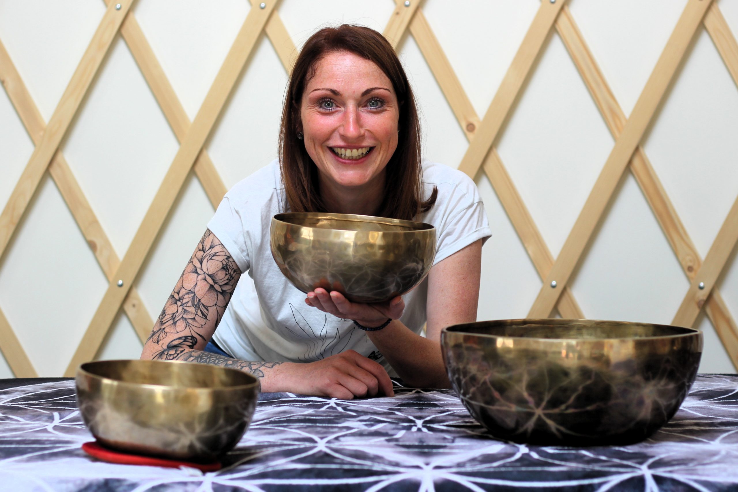 Je crée des espaces où vous pouvez vous déposer, ralentir, et retrouver cette lumière. À travers les bols tibétains et les vibrations sonores, je vous accompagne avec douceur vers votre juste fréquence.