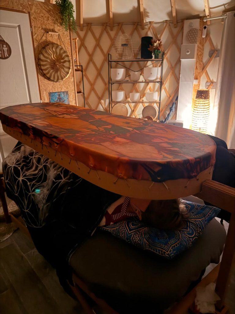 Lors d’une séance, le son et les vibrations enveloppent littéralement la personne, comme une vague douce et puissante à la fois.